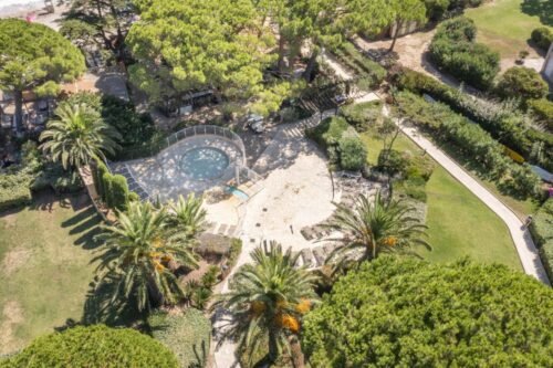 Kinderen zullen dol zijn op het kinderbad, geopend van april tot oktober, terwijl volwassenen kunnen ontspannen op de zelfbedieningsligbedden in het solarium. Slechts 50 meter verderop ligt een charmant strand met seizoensgebonden faciliteiten, perfect voor zwemmen en ontspanning, bereikbaar via het privépark.