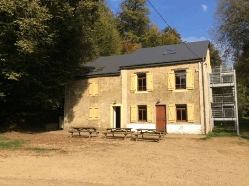 Natuurhuis, pal aan de Fransde grens, is geschikt voor 44 personen, met een unieke ligging midden in het bos, op het einde van een doodlopende weg. Het natuurhuis ligt op een domein van 8.000 m² en wordt aan één kant omgeven door een beekje. Het huis is geschikt voor groepen kinderen en jongeren, voor sportverenigingen en andere verenigingen, voor bosklassen, maar door zijn gezellige bouwstijl en bijzondere locatie ook zeker voor families en vriendengroepen. Het huis bestaat uit een professioneel ingerichte keuken, een grote leefruimte met mooie houtkachel, een sanitair gedeelte met douches en toiletten, vier grote slaapkamers met stapelbedden en gewone bedden (twee kamers voor acht personen, één kamer voor 18 personen en een zolderkamer voor 10 personen). GEEN Studentenfeesten, fuiven en drinkpartijen! Door aanhoudende wantoestanden met groepen jongvolwassenen, aanvaarden wij geen vriendengroepen onder de 30 jaar meer tenzij het om een erkende Belgische (jeugd)organisatie gaat.